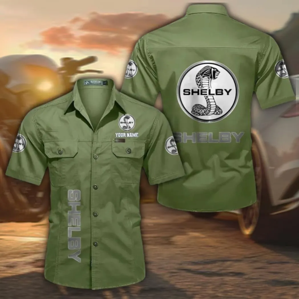Touring Sedan Men's Short Sleeve Cotton Shirt, Custom Name CAR392 - Army Green
