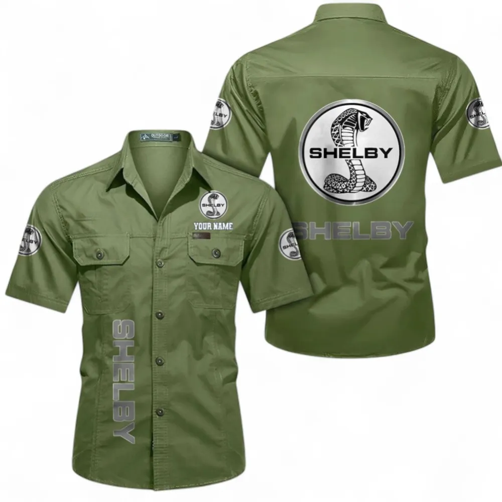 European Automobile Cotton Casual Short Sleeve Shirt, Custom Name CAR392 - Gray