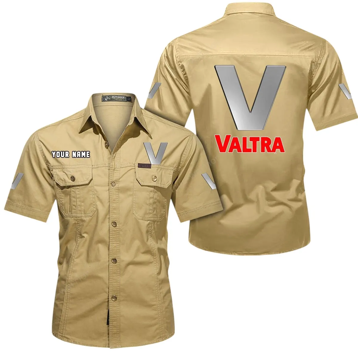 Farming Vehicle Exclusive Logo Short Sleeved Shirt, Gift For Farming Vehicle Lovers CAR444 - Khaki