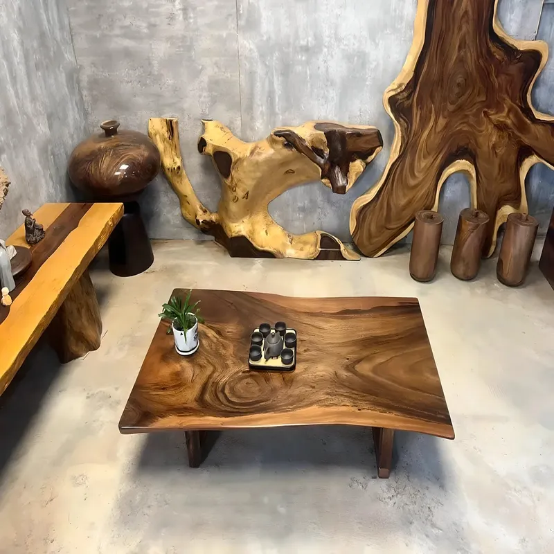 The design favors function and honest material. There are no superfluous details and the wood remains the visual highlight. Pair the table with two light chairs or use it as a low tea table with cushions. The natural tone works with warm and cool palettes and welcomes seasonal changes in textiles. A small tray can gather condiments or stationery to keep the surface ready for whatever comes next.