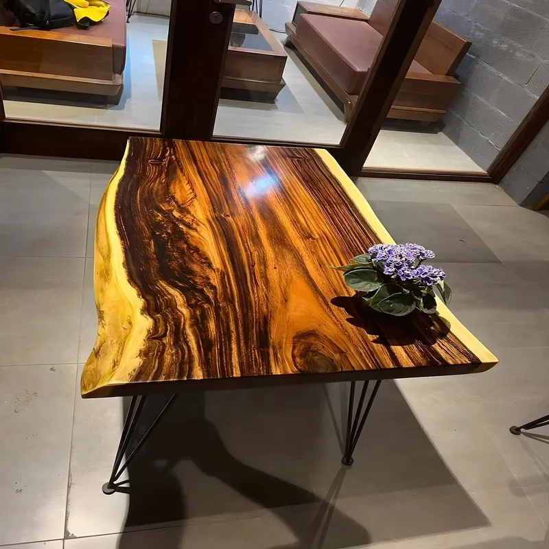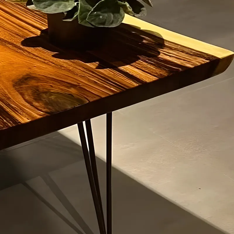 Styling the table is simple. A low plant or a small bowl will complete the top while leaving useful space for daily needs. The natural tone of the timber warms neutral palettes and pairs well with cool grays deep blues and soft greens. Place the table near a window to let light show the grain during the day and to create a quiet corner for reading in the evening.