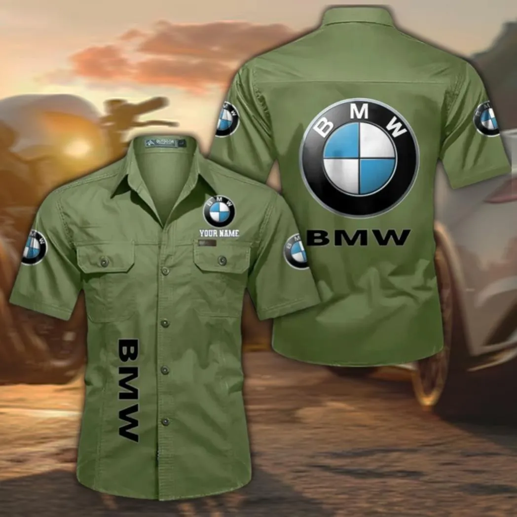 Touring Sedan Men's Short Sleeve Cotton Shirt, Custom Name CAR392 - Army Green